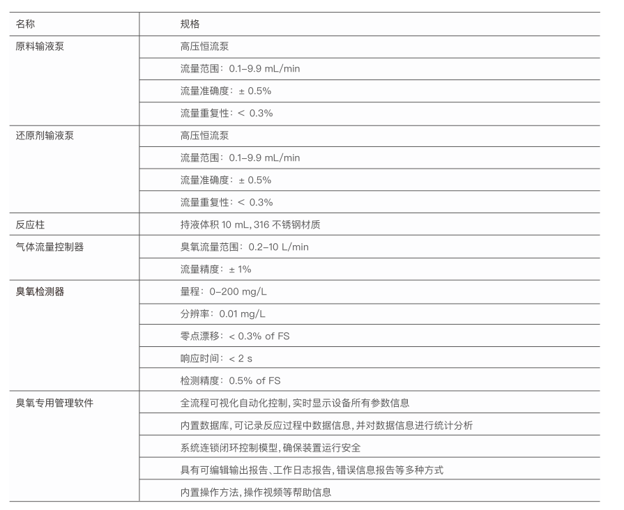 O-Flow-S10全自動臭氧反應儀有原料泵、還原劑輸液泵、氣液微混合器、微填充床反應器,在線臭氧檢測器及臭氧軟件控制系統組成,通過系統關聯閉環控制,實現全自動臭氧類反應。該設備是一款基于微反應技術的高可靠性設備。