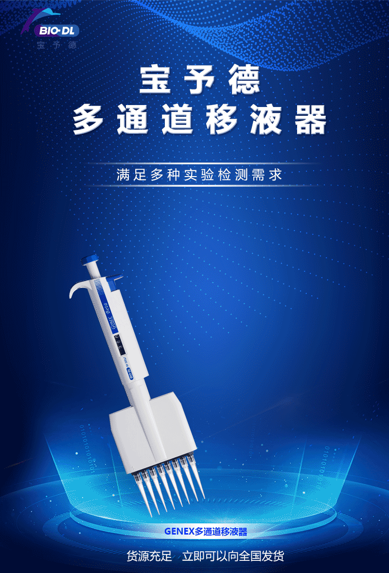 寶予德Genex/Adonis/Colour系列移液器,不僅有8通道,還有12通道移液器,量程覆蓋新冠檢測常用的0.5-10μl、5-50μl,更有100-1000μl大量程8通道移液器。采用進口材料,輕松的按壓力+精準的移液性能,能夠滿足多種實驗檢測需求。目前貨源充足,可以立即向全國發(fā)貨。